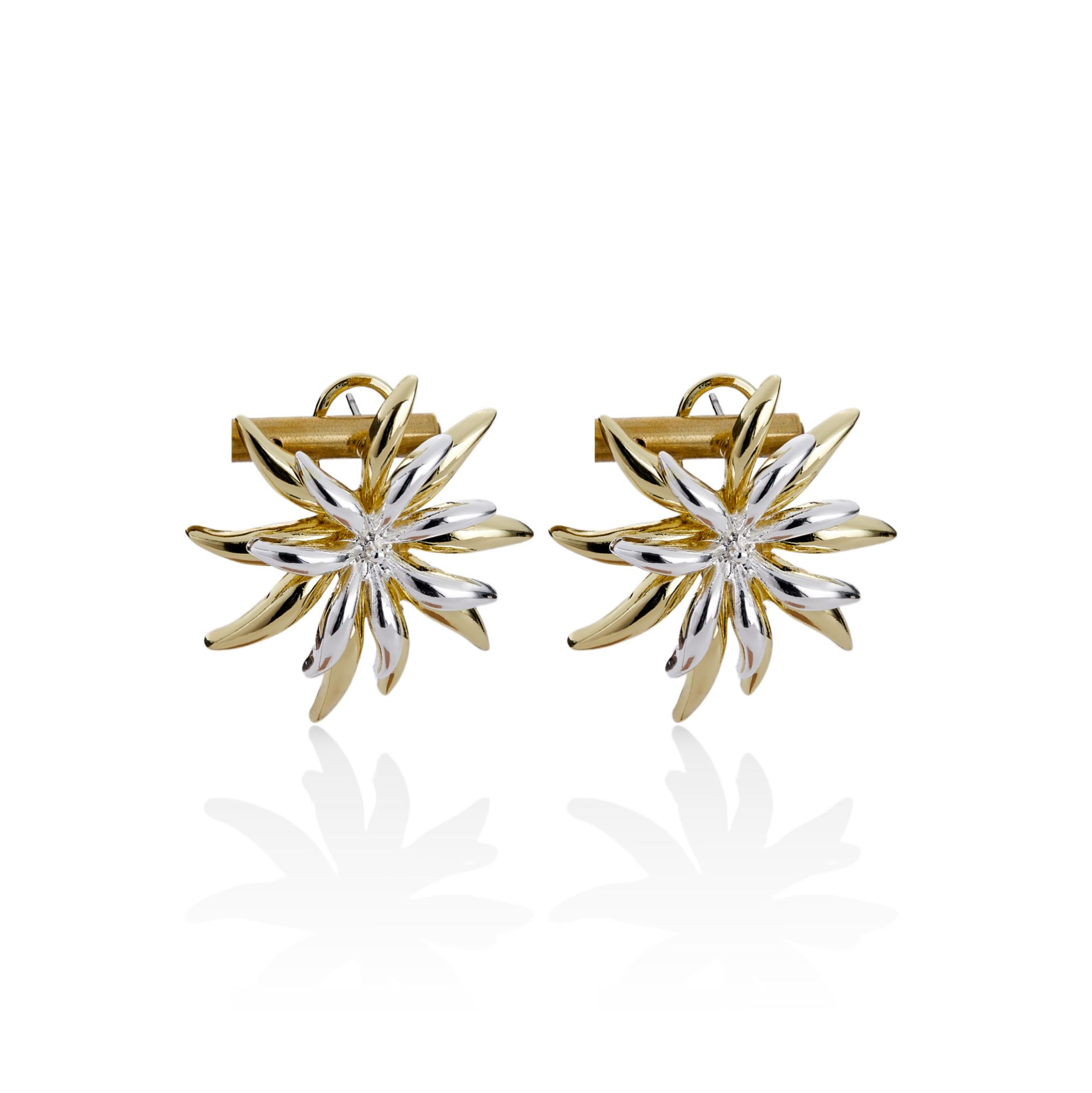 Mesmera 14K Altın Kaplama Çiftli Çiçekli Küpe