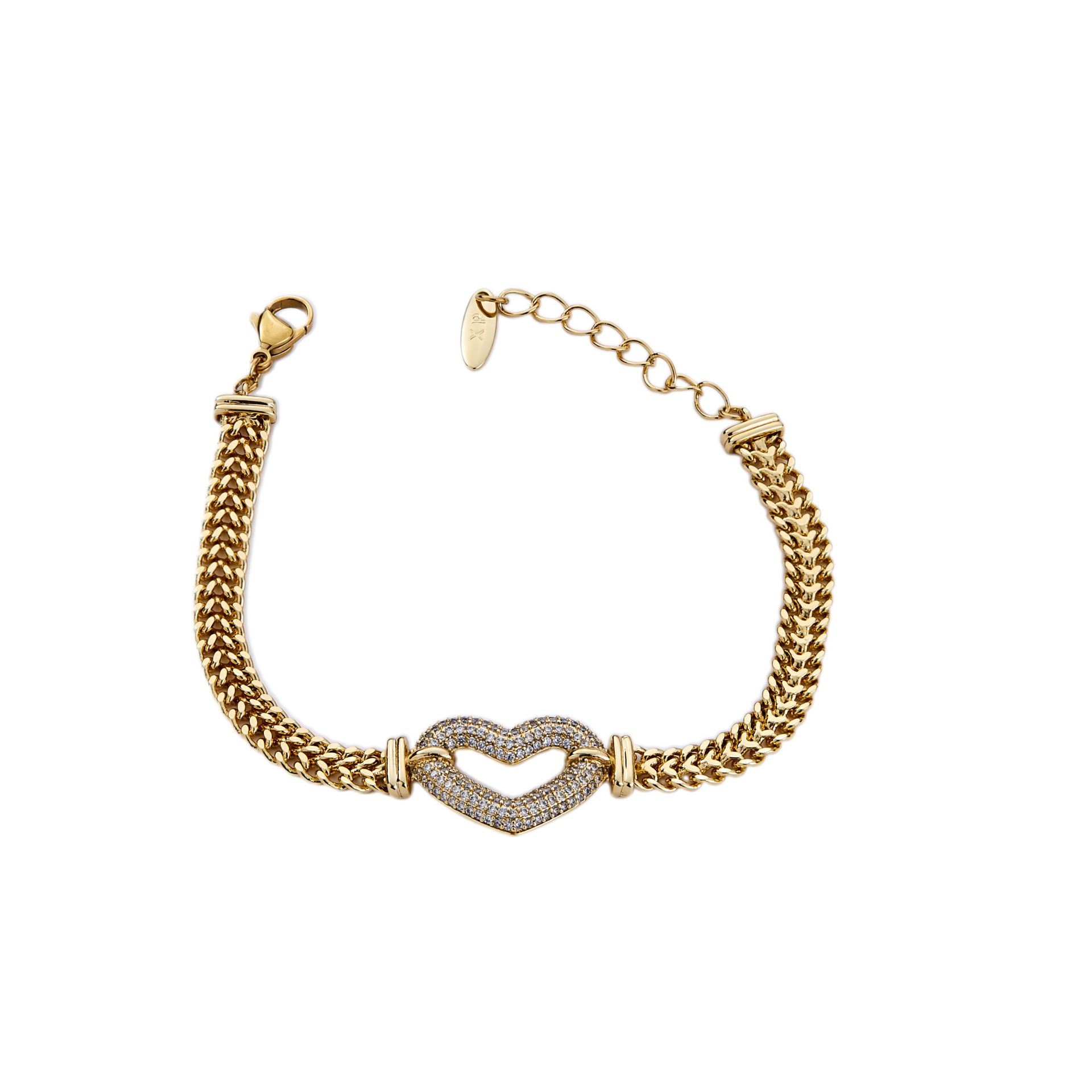 Mesmera 14K Altın Kaplama Kalpli Zincir Bileklik