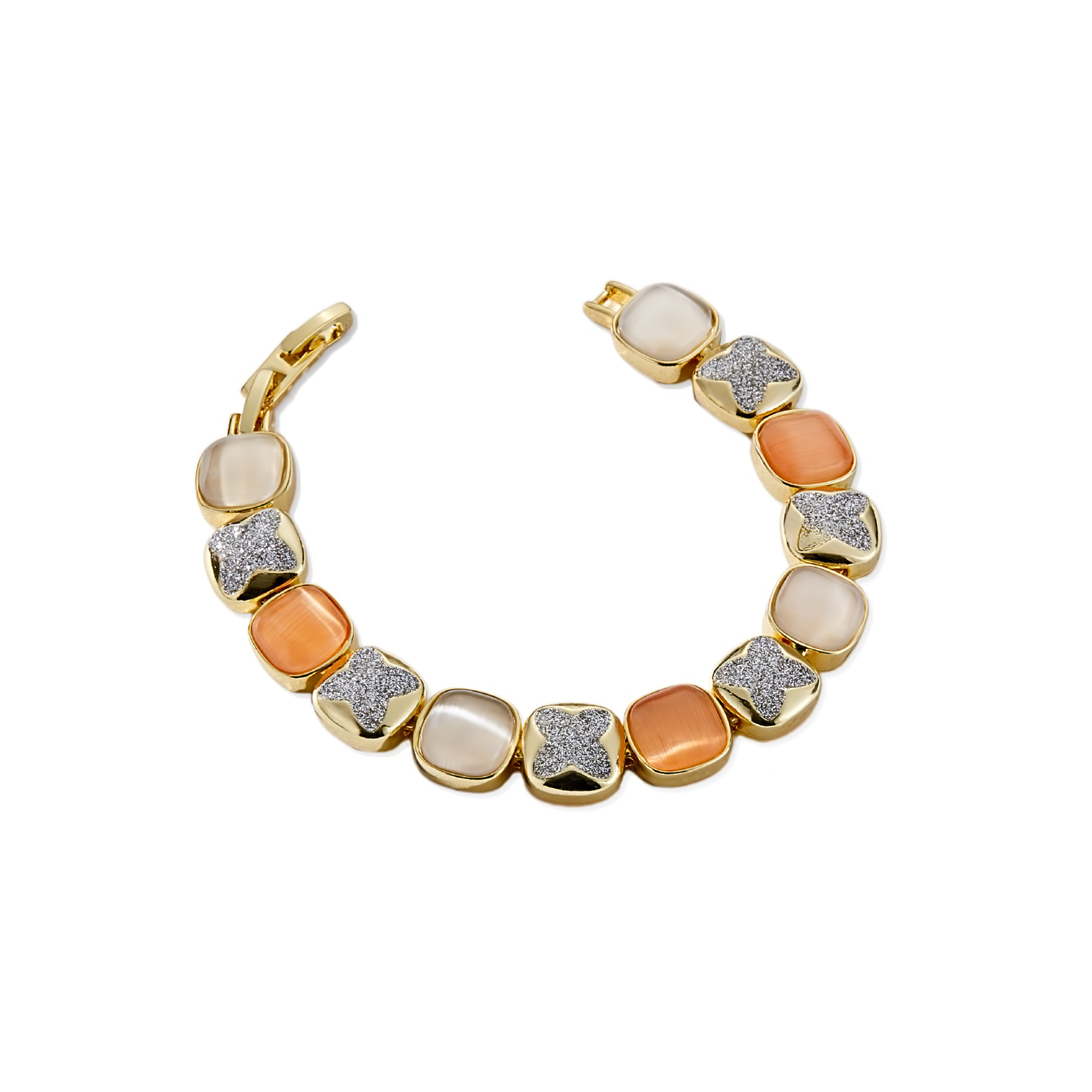 Mesmera 14K Altın Kaplama Kare Rose Gold Simli Taş Bileklik
