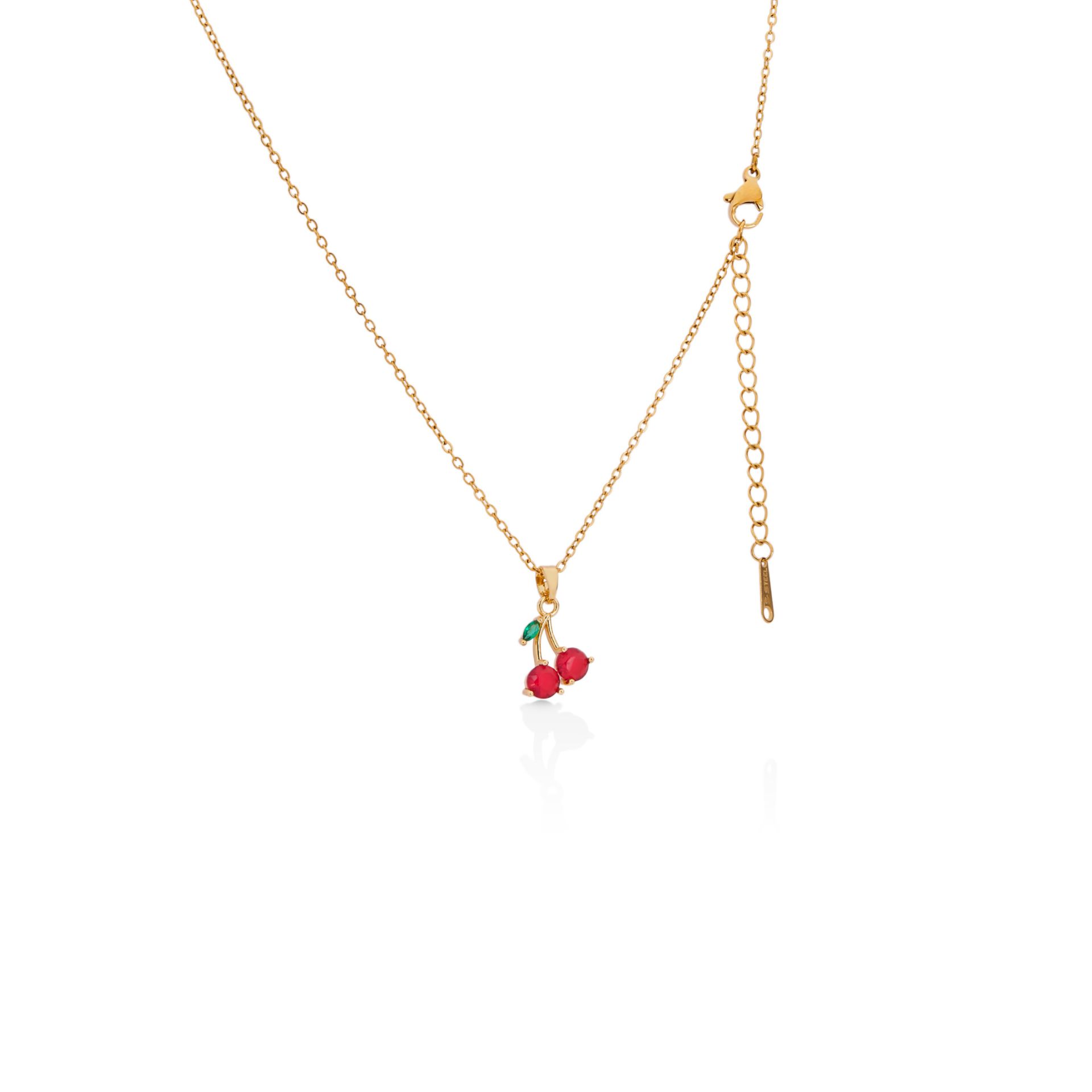 - Zarif tasarımıyla dikkat çeken Mesmera Kiraz kolye, altın rengindeki parlaklığı ile her türlü kıyafeti tamamlar.- Kadın ve kız kullanıcılar için ideal olan bu kolye, yetişkin yaş grubuna hitap ederken şıklığınızı ön plana çıkarır.- Altın renginin asaletini yansıtan bu kolye, hem günlük kullanım hem de özel günlerde tercih edebileceğiniz ideal bir aksesuardır.- 45 cm uzunluğundaki zarif zinciri ile boyunuza uygun ayarlanabilirlik sunarak her türlü vücut tipine mükemmel uyum sağlar.