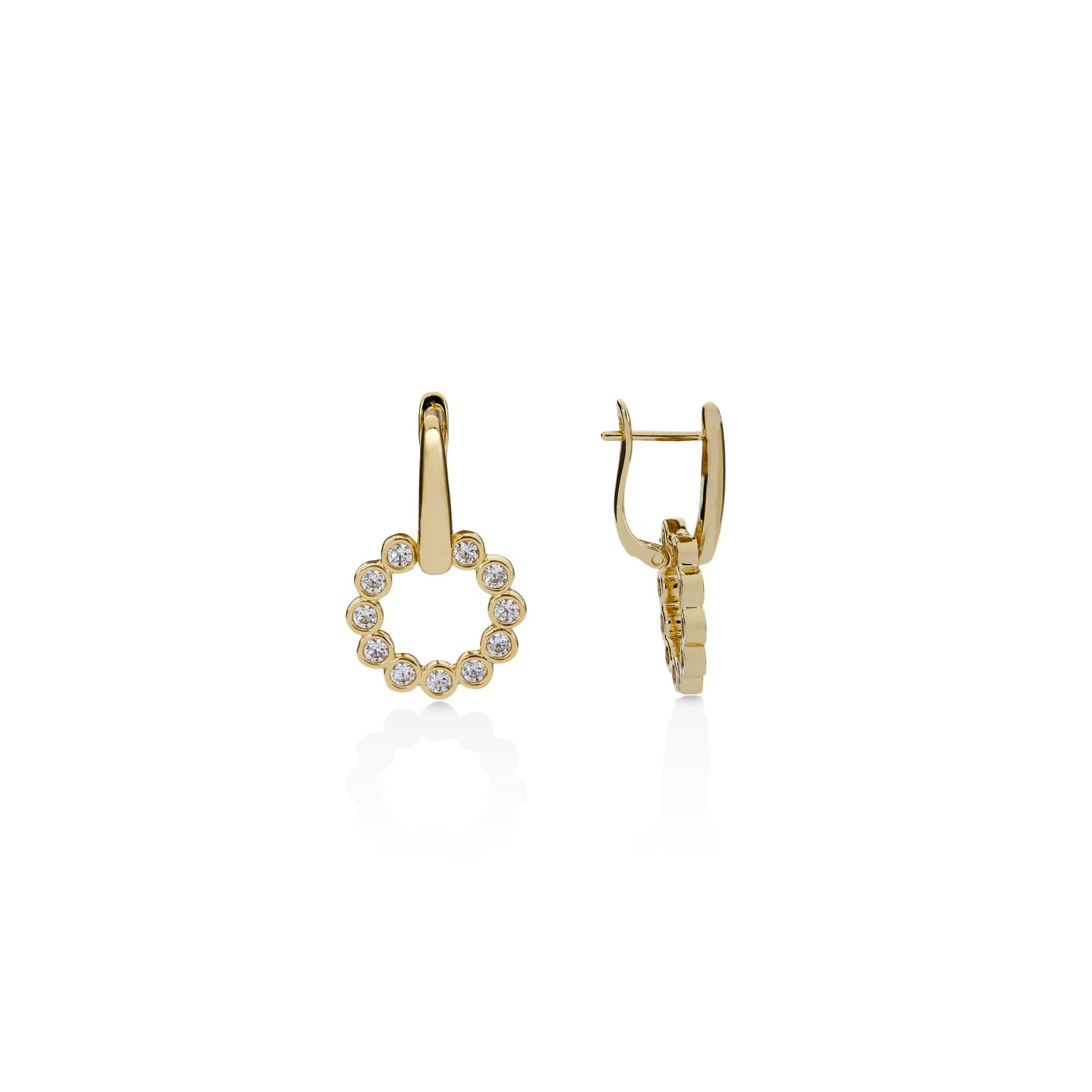 - Zarif tasarımıyla dikkat çeken Mesmera Taşlı Halka Küpe, kadınların şıklığını tamamlar. Altın rengi seçeneğiyle her türlü kıyafetle uyum sağlayarak göz alıcı bir görünüm kazandırır. - Altın renginin asaletini yansıtan bu halka küpeler, özel günlerde veya günlük kullanımda idealdir.
